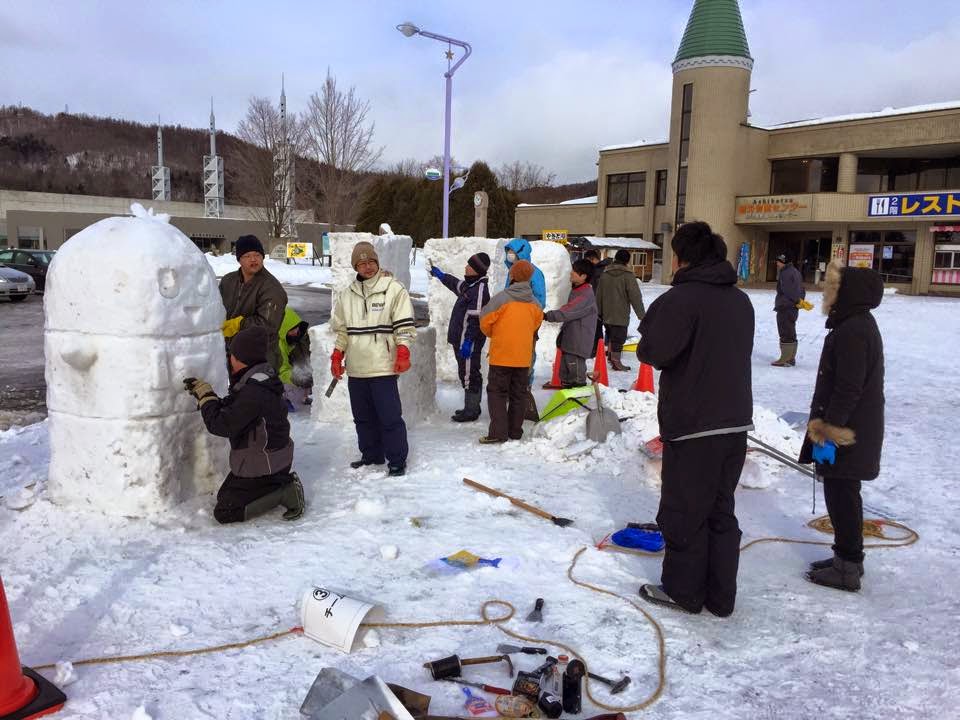 雪像&巨大すべり台 作成中!(あしべつ雪まつり2015)
