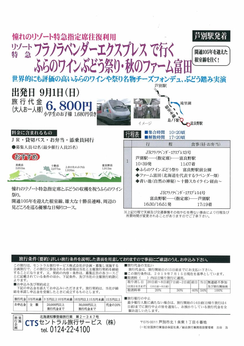 【芦別駅発着】リゾート特急 フラノラベンダーエクスプレスで行く ふらのワインぶどう祭り・秋のファーム富田