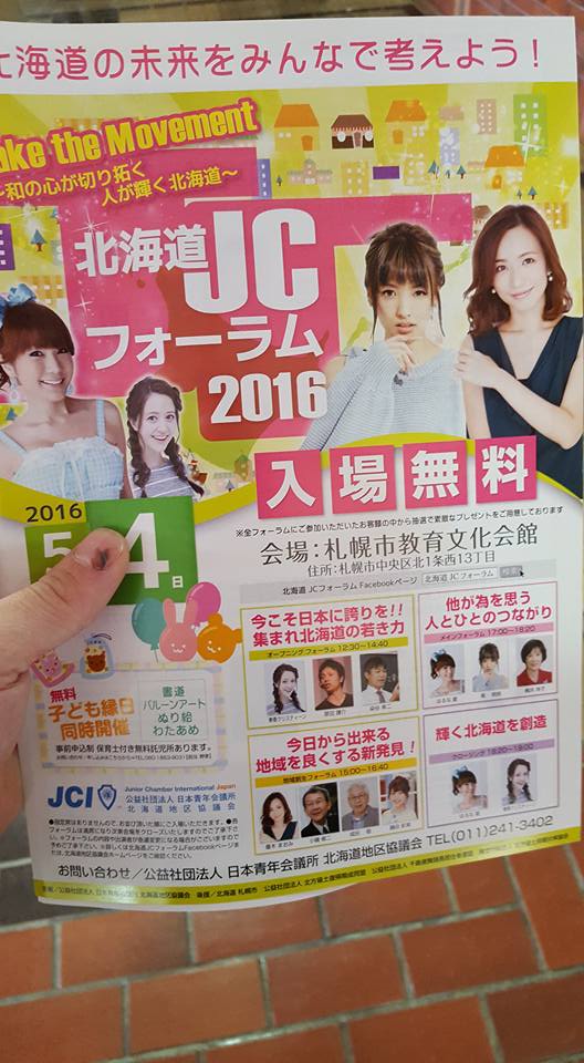 5月4日みどりの日に札幌市教育文化会館にて、北海道JCフォーラム2016が開催されました。