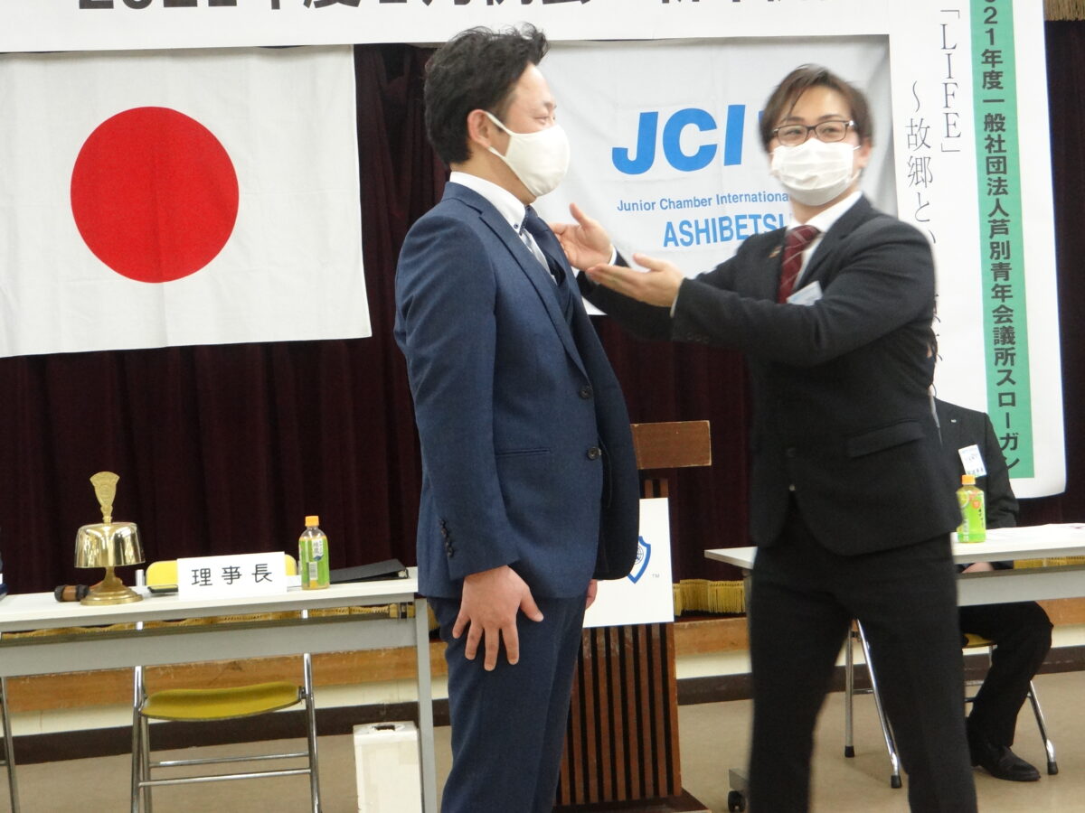 2020年度道島理事長から2021年度嶋理事長へ理事長バッジ交換が行われ、新体制で今年が始まったという実感が湧きました。