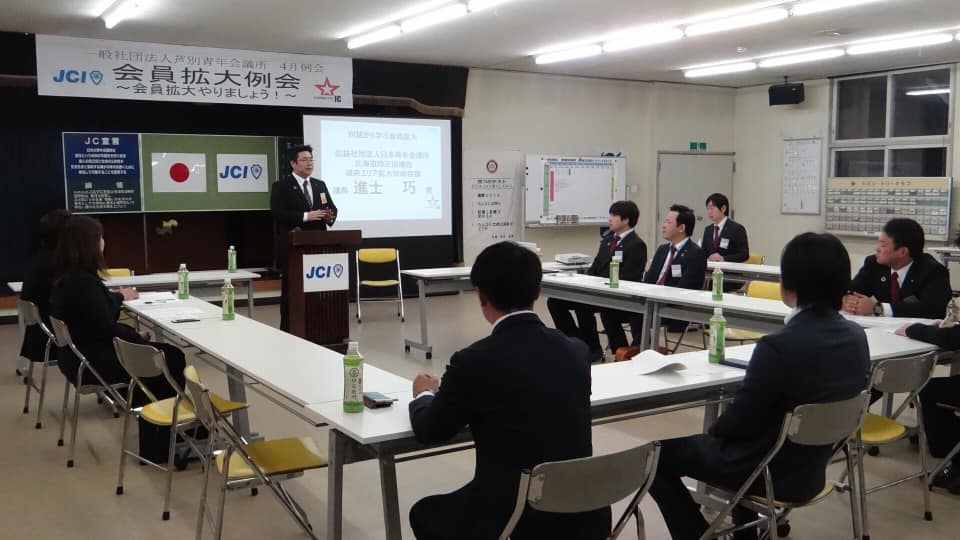 会員拡大例会「会員拡大やりましょう」が開催されました。この例会では今年度6名の拡大を目指し会議を重ね、今回の例会を開催する事となりました。当日の例会では公益社団法人日本青年会議所北海道地区協議会道央エリア拡大特命会議 議長 進士 巧 議長をお招きし、会員拡大に向けての為になる講演と会員拡大ロードマップを作成し、メンバー全員で活動していく目標を立てました。