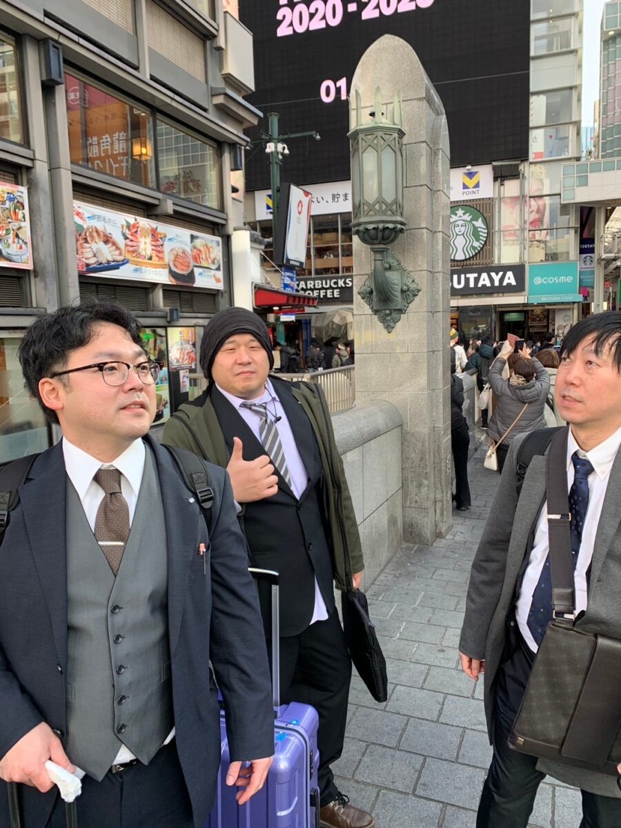 みんなで新年式典の会場に向かい