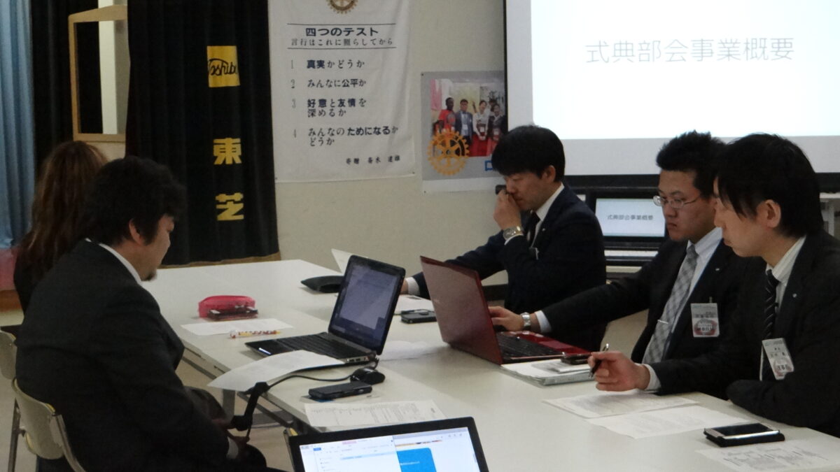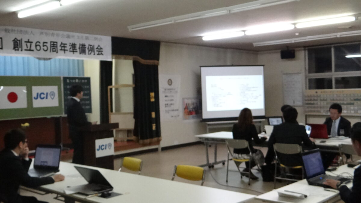 6月9日(土)の当日まで残り約2ヶ月となり、準備期間も短くなってきた中、今回は第2回目の準備例会ということで、各部会の部会長からプレゼン方式で事業の方向性が発表され、メンバーが創立65周年事業全体の内容を把握することができました。