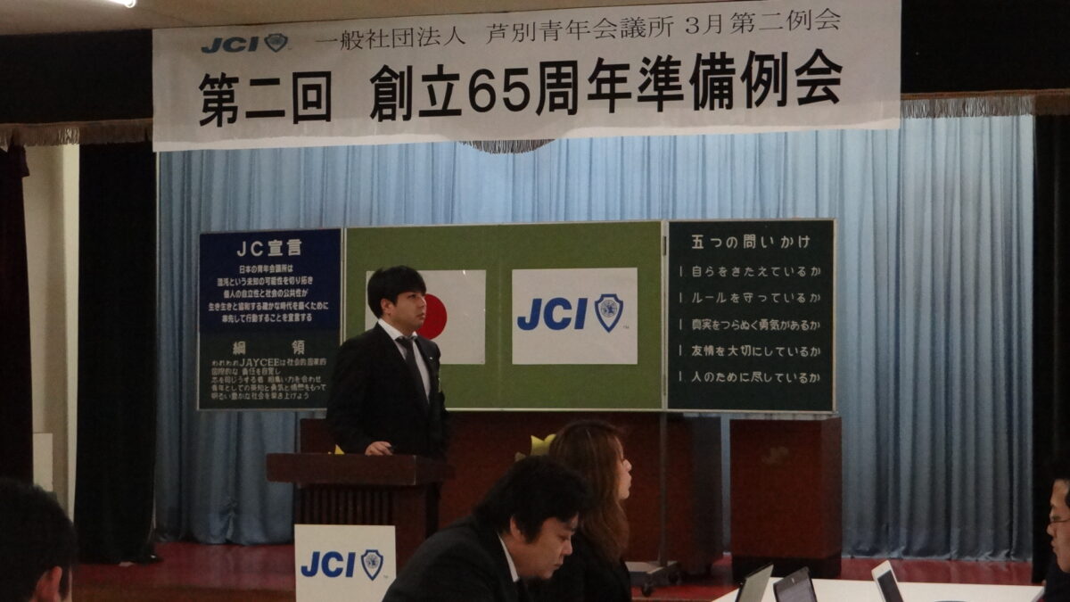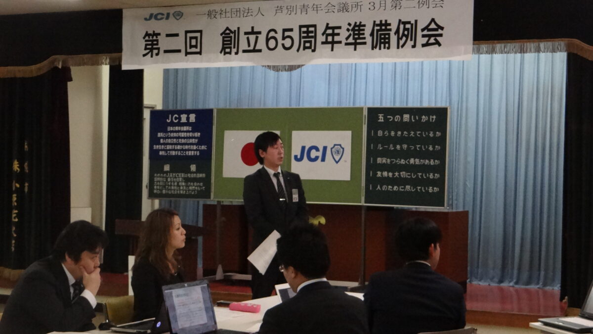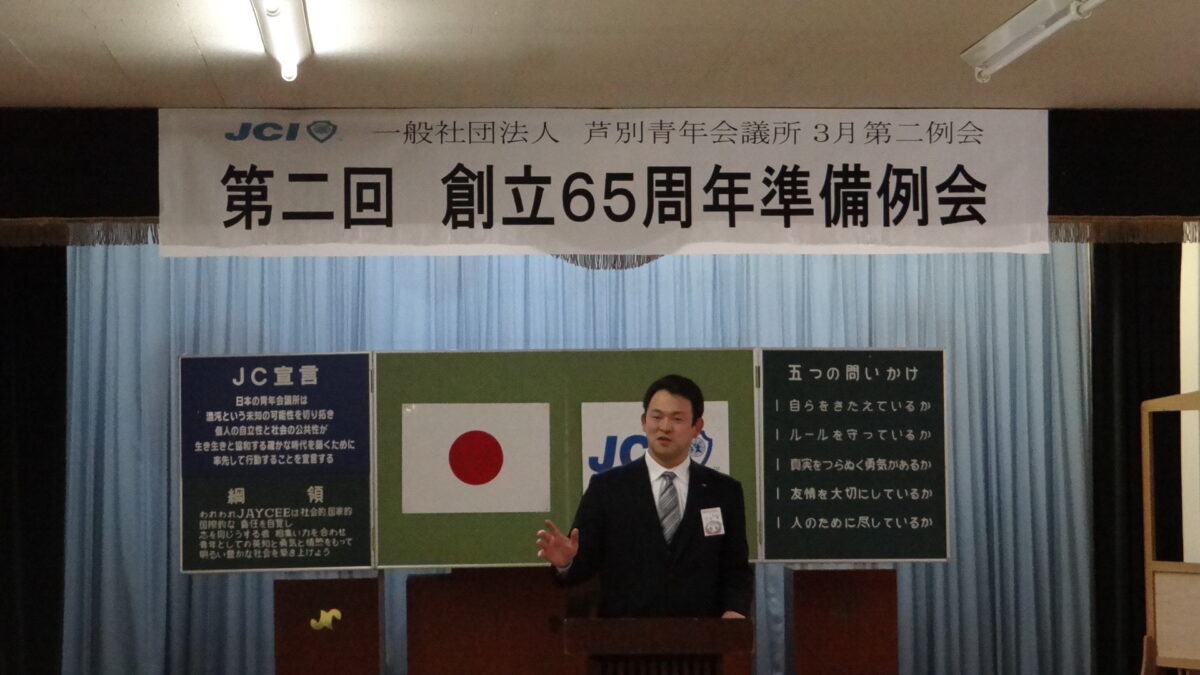 去る3月29日(木)、芦別商工会議所において3月第二例会「第二回創立65周年準備例会」が開催されました。