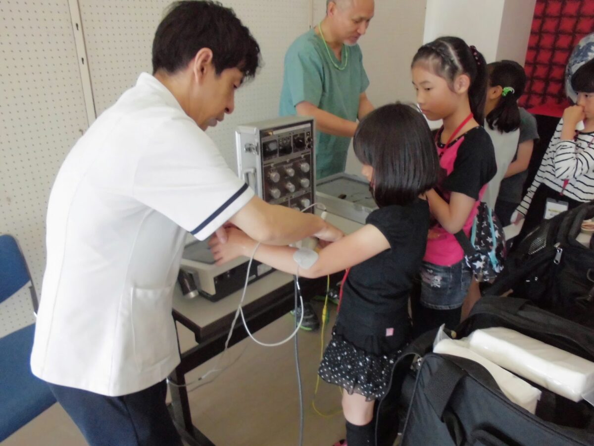 募集時は定員50名としていましたが、90名を超える申込があり当日は70名を超える参加者が会場に集まり、警察官、消防士、車屋、大工、整骨院、看護師、花屋、パティシエ、新聞記者の職種の中から「お仕事体験」を行いました。